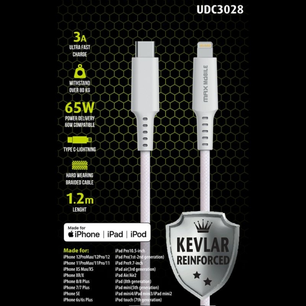 MM DATA KABEL I-PHONE LIGH.TYPE C MFI APPLE KEVLAR QC3A 1.2M