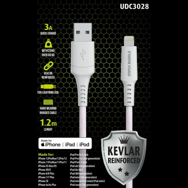 MM DATA KABEL I-PHONE LIGHT.-USB MFI Apple KEVLAR QC 3A 1,2m